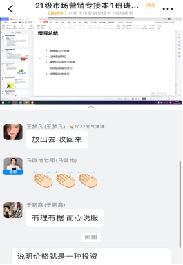 2、讲解辨明异议的方法和要点,处理异议的黄金八法;就砍价技巧与经历与同学们在评论区进行了互动。