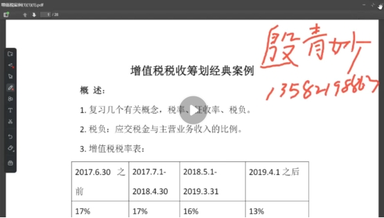 本节授课内容包括增值税的基本概念、法律背景和相关案例筹划方法,内容如下:
