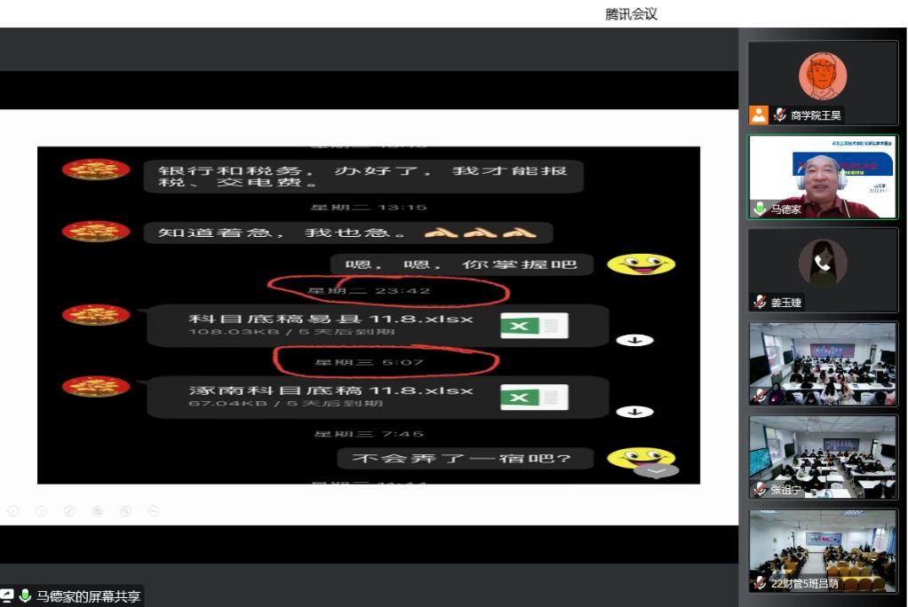 2022年11月11日星期五15:50-17:50,河北省交通会计学会副会长、《河北交通财会》主编、石家庄京德企业管理咨询有限公司董事长马德家总会计师受邀为雷竞技RAYBET财务管理专业、审计学专业员工开展学术讲座,本次会议主题为《财审专业老员工应知应会—总会计师与你聊财审》,会议由教学副经理姜玉婕老师主持。