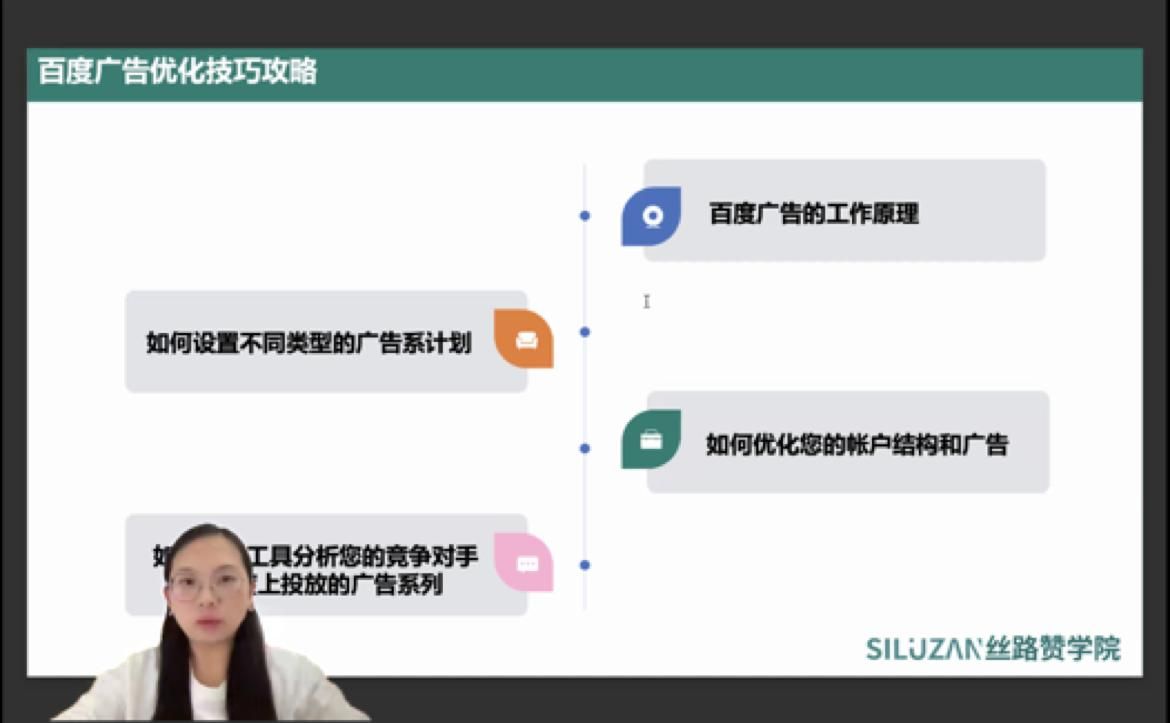 通过高老师精彩的讲解,我们学会了数字化营销转型的策略、百度广告优化技巧、如何设置广告计划、如何优化账户结构、如何用工具分析竞争对手等新的营销知识。这节课的知识让我们受益匪浅,拓宽了我们的视野,为以后从事数字营销工作打下了良好的基础。