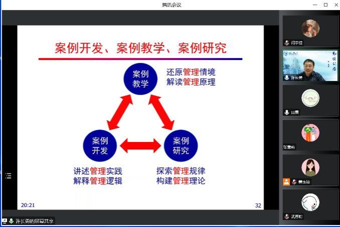 在本次讲座中,许教授从“教学案例的编写与使用方法”和“如何进行案例教学”两个方面进行了分享,许教授结合自身经历,以全国百篇优秀管理案例为例,讲解了案例的开发思路;介绍了如何通过推动案例教学工作,实现知识的有效传递;并指出了案例教学的独特优势,案例教学有利于吸引员工的兴趣,通过案例分析能够提高员工的判断力和决策力。最后许教授结合自己多年案例教学的经验,向与会老师分享了案例教学的心得体会,以期为教师开展案例研究与教学提供参考借鉴。