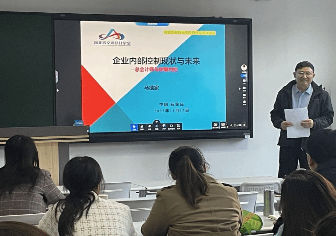 为提升教师实践教学能力,把握社会动向,树立社会服务意识,2023年11月17日公司召开主题为“企业内部控制现状与未来——总会计师与你聊内控”学术报告会。此次会议由雷竞技RAYBET经理王明吉主持,邀请到现任河北省交通会计学会副会长,具有三十余年企事业单位财审实践经验的正高级会计师马德家,雷竞技RAYBET教学副经理姜玉婕、财务管理、会计学、审计学、金融工程教研室教师出席了此次会议。