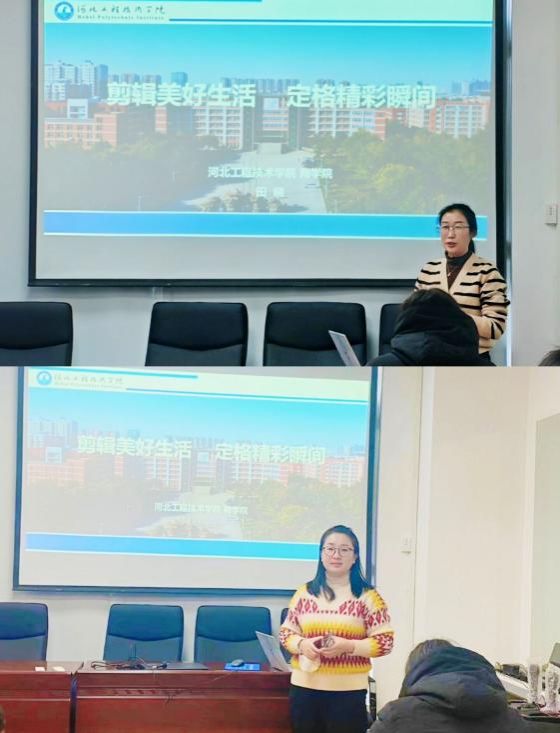 本次培训在汇祥社区举行,由电子商务系主任姬静和专任教师田晓为大家授课,主要是以图文授课与现场实操结合的方式开展,以剪映APP为操作工具,从构图、拍摄技巧、后期制作等方面为居民进行了详细地讲解,授课老师一边讲解一边现场操作示范,耐心教居民将自己手机中的照片、视频片段等素材拼接合成视频,同时教授大家设置炫酷转场、增加背景音乐等视频剪辑技巧。