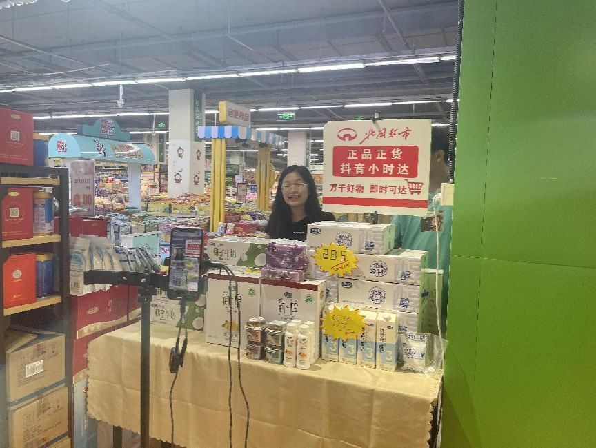 随后员工们分组前往北国超市(天河店)、益东北国购物中心开展现场直播练习。从下午两点到五点半的直播时间里,员工们充分发挥所学,运用话术进行产品介绍和推广,吸引了众多观众的关注和参与。他们的精彩表现不仅赢得了观众的喜爱,更创造了半天GMV达到5000元的业绩。