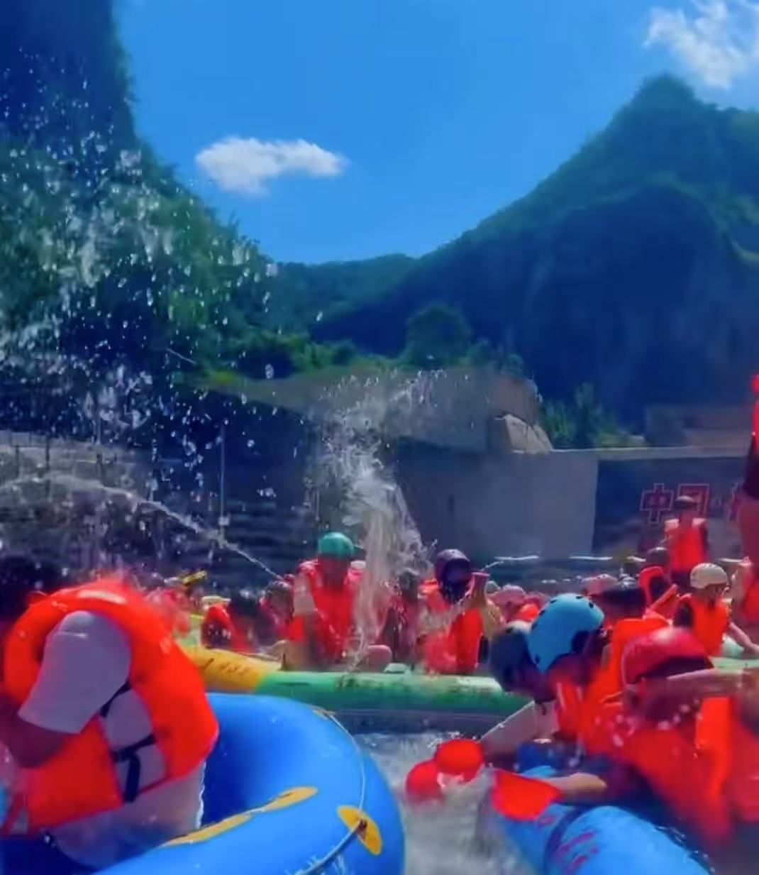 红色初心之旅结束后,教职工前往井陉红河大峡谷,开启清凉之旅。大家积极参与水上互动项目,于青山碧水间释放压力,收获团结与友谊。漂流过程中,教职工相互协作,共同应对湍急水流,既体验了惊险刺激的户外运动,又提升了团队默契与信任。活动现场欢声笑语不断,充分展现了教职工昂扬向上的精神风貌。