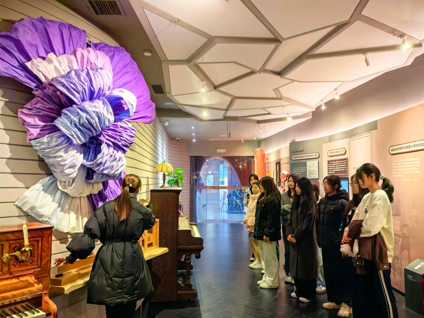 同学们在听最早的六角钢琴音乐