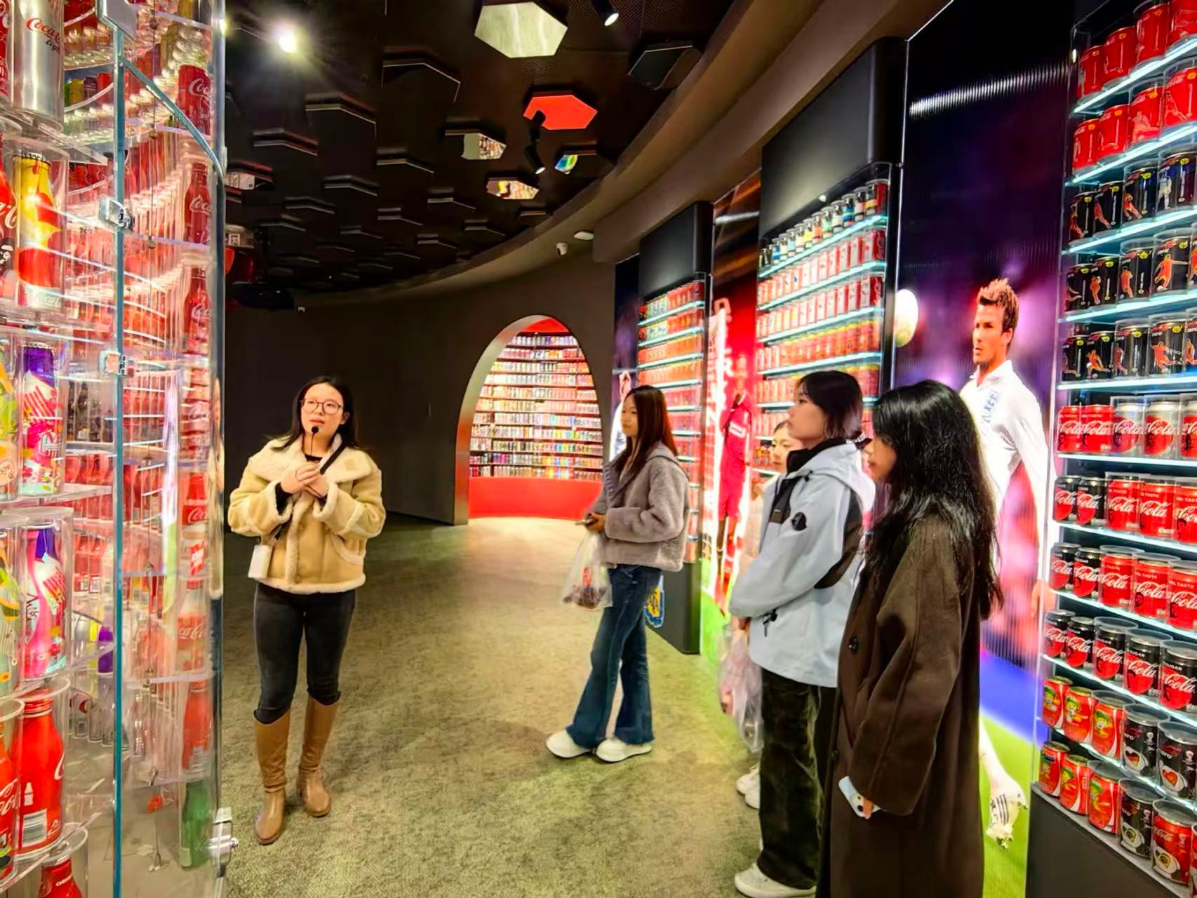 随后,同学们走进可口可乐博物馆,系统了解了这一国际品牌从配方诞生到全球扩张的130余年历程。展馆以时间轴形式呈现了可口可乐商标、广告、瓶身设计的演变过程,特别展示了其在中国市场的本土化传播策略——从早期月份牌广告到近年来的国潮联名系列。现场展示了可口可乐各类限量包装与社交媒体传播案例,生动阐释了可口可乐如何持续构建品牌形象、维系用户忠诚,成为全球最具价值的品牌之一。