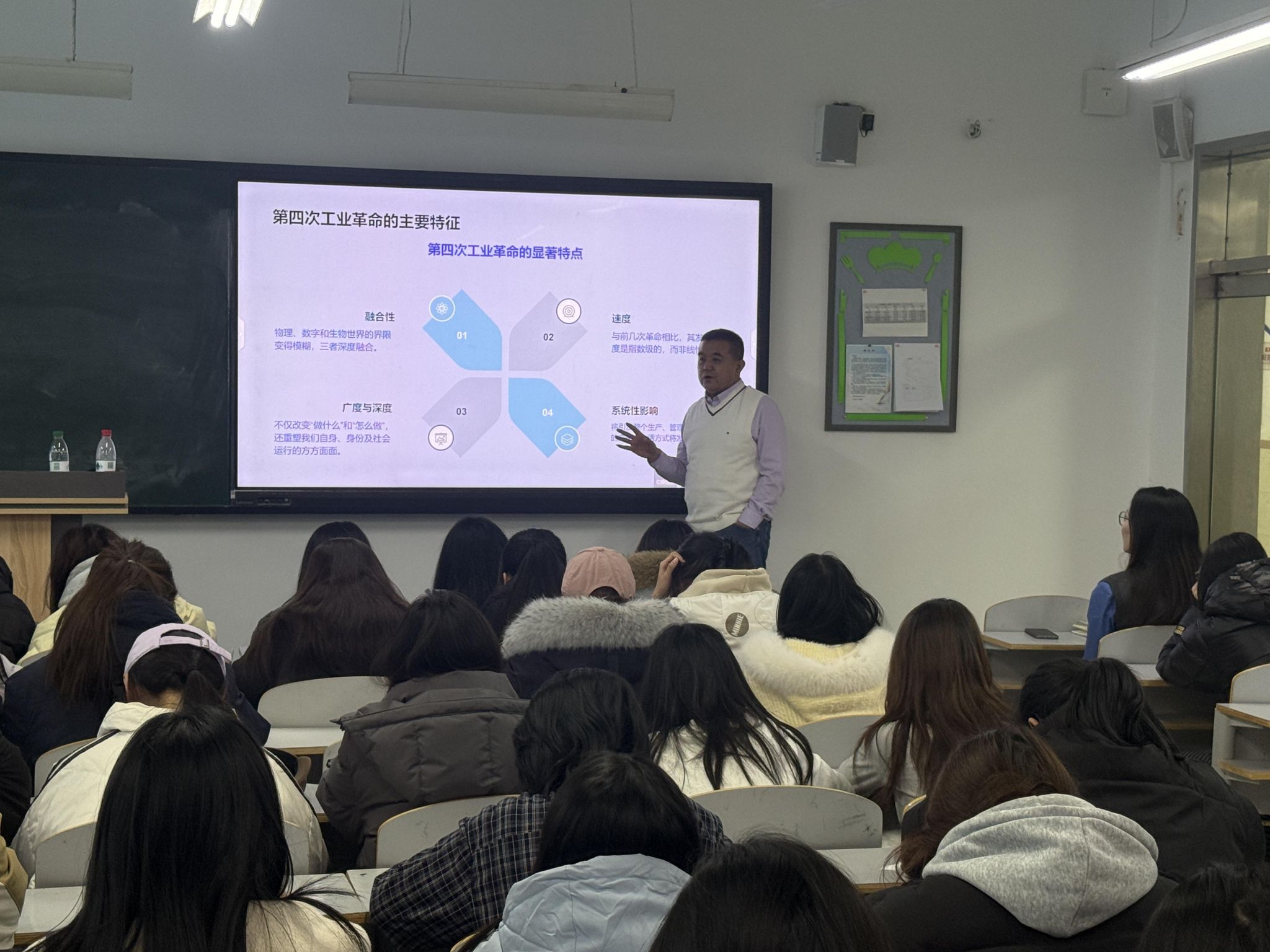 围绕数字时代的机遇与挑战,房总指出,数字技术的飞速发展不仅推动了知识更新速度加快、工具技术迭代升级、工作效率大幅提升,更让数据成为核心生产要素,催生出AI营销、直播带货、“互联网+”产业转型等全新商业形态。他以君乐宝、蒙牛的AI营销实践为例,详细阐述了数字时代营销模式的变革方向,强调“数据价值凸显”已成为企业竞争的核心优势,而“情绪营销”作为无法被机器替代的核心竞争力,正成为市场营销的新焦点。房总通过亲身经历——为母亲撰写医药科普文章并发表于百度,他生动展现了数字信息对日常生活的深远影响。同时,他也提醒同学们关注就业结构变化、数字鸿沟、数据安全等挑战,学会辩证看待时代变革。