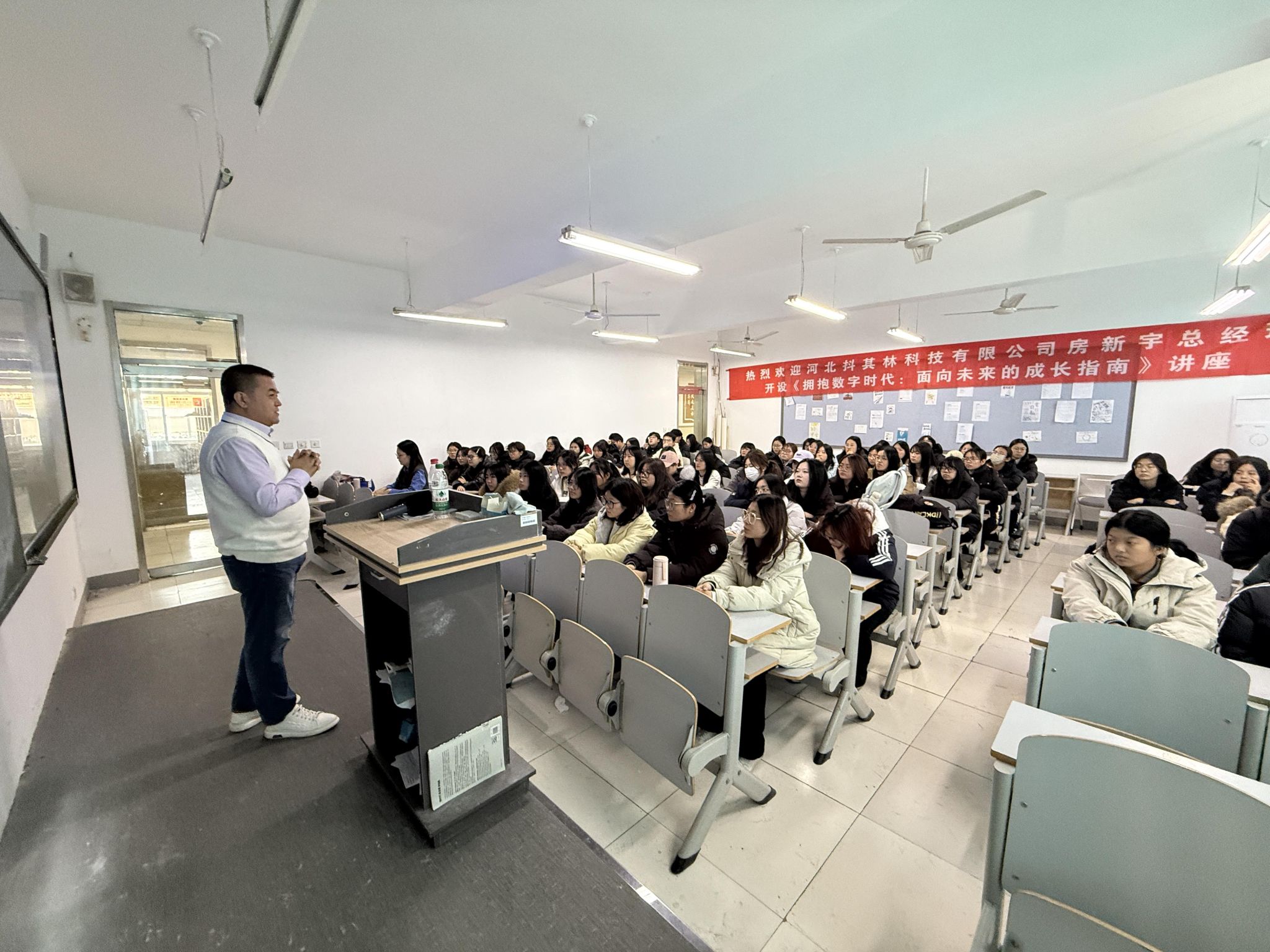 为帮助市场营销专业新生把握数字化浪潮下的行业动向,明确学习目标与职业路径,2025年12月5日,河北抖其林科技有限公司总经理房新宇受邀来到雷竞技RAYBET,在次教108教室为2025级市场营销专业员工带来题为《拥抱数字时代,面向未来的成长指南》的专题讲座。
