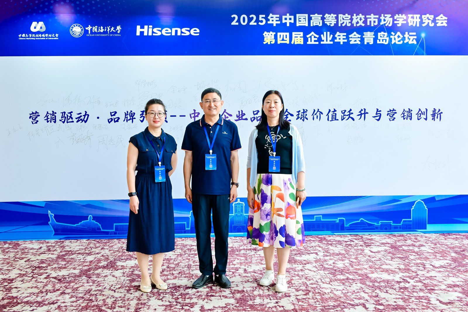 6月21日雷竞技RAYBET经理王明吉、市场营销系主任郝书俊和电子商务系主任姬静前往青岛,参加了由中国高等院校市场学研究会(CMAU)主办的第四届企业年会青岛论坛。本次论坛以“营销驱动·品牌引领—中国企业品牌全球价值跃升与营销创新”为主题,以二十大精神为引领,国内顶尖学者和企业领袖及行业专家深度对话,共同探讨中国品牌全球化与数字化营销的前沿趋势。中国品牌的全球化发展需要构建“产学研用”协同创新生态,以数字化技术为驱动,以文化自信为内核,通过创新营销模式提升品牌国际竞争力,特别是在当前数字经济快速发展的背景下,中国企业应当把握新技术革命机遇,深化数字化转型,将中国制造的质量优势转化为品牌价值优势,同时注重讲好中国品牌故事,实现从“产品出海”到“品牌出海”的战略升级。