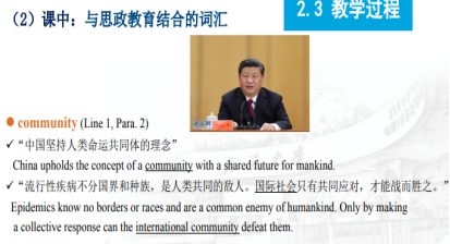 本节课的课程思政设计围绕社会主义核心价值观的思政主题,运用多模态语言素材。教师围绕本节课课文相关词汇,提供有价值引领的例句作为教学内容,优化了内容供给;通过增加中国文化内容实现中西文化并存;通过教学内容二次开发,提炼、凸显思政元素;重构练习内容,巩固思政效应。让员工明确中国青年的态度与责任,讲好中国故事,传递中国声音。在中外思想碰撞中,提升文化自信及文明互鉴意识。