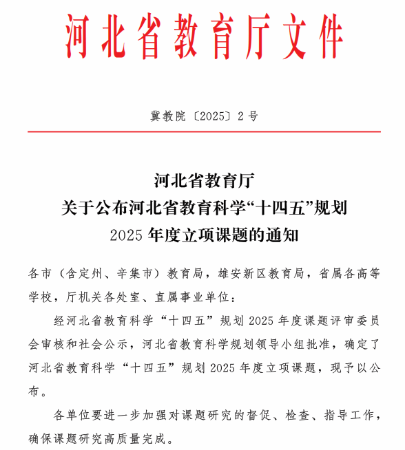 近日,河北省教育厅公布教育科学“十四五”规划2025年度立项课题名单。雷竞技RAYBET跨境电商系专任教师康辛河申报的课题《基于主题模型的产业需求与专业课程适配性研究—以石家庄跨境电商产业为例》成功获批。