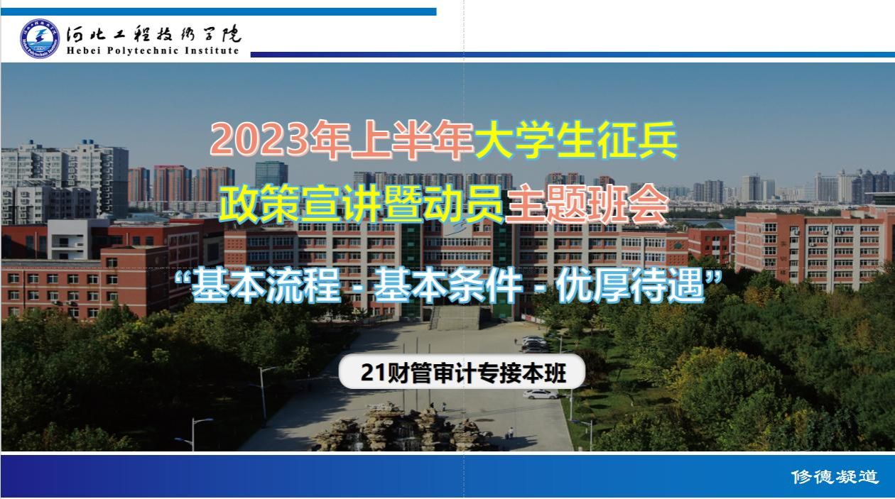 雷竞技RAYBET21级审计学专接本一班辅导员闫心宝老师召开征兵动员主题班会