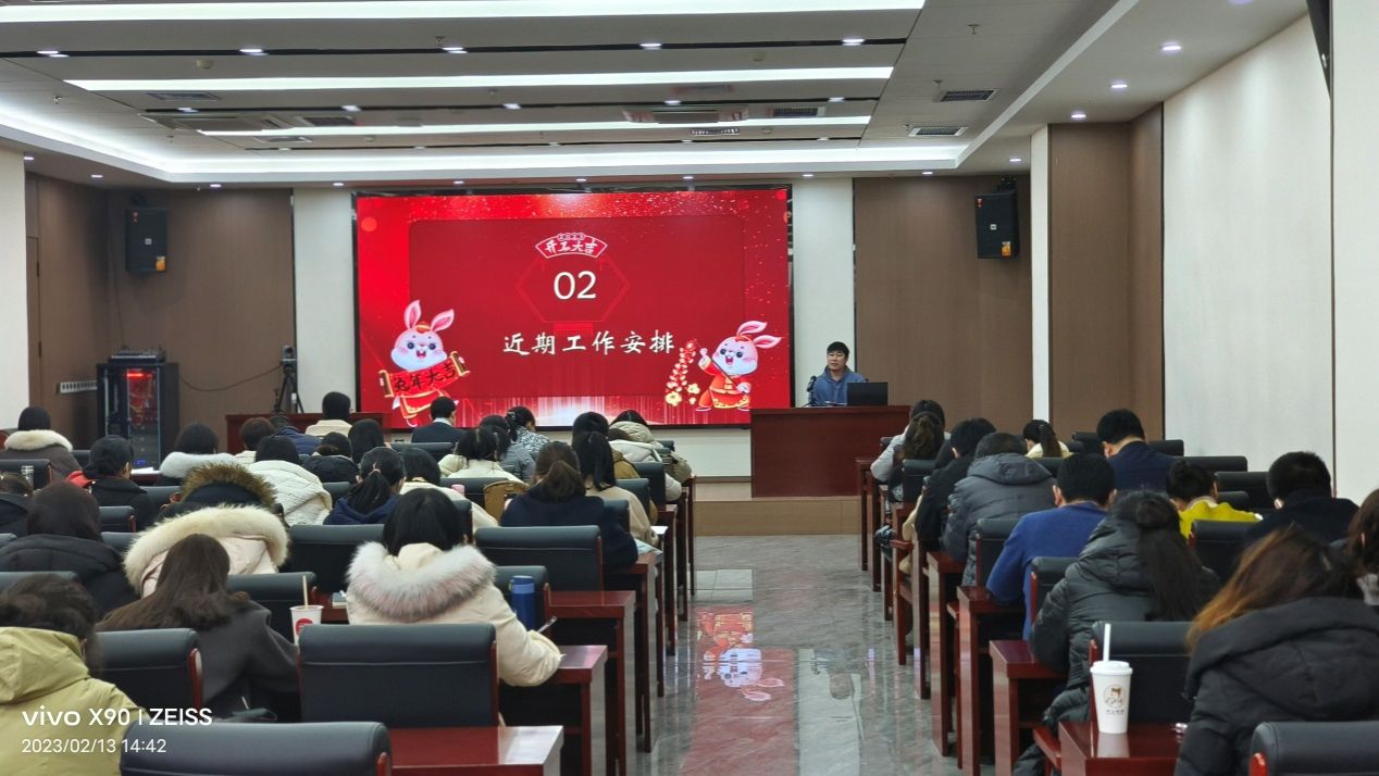 最后王明吉经理做总结讲话,提出2023年是党的二十大精神的开局之年,是全面推进中华民族伟大复兴宏伟蓝图的重要一年,也是公司“本科教学合格评估”和高质量发展的关键一年。首先,针对二十大会议精神,经理强调的要“划重点、作部署、明方法、重落实、抓关键”,做到大道至简、实干为要。另外,指出本科教学合格评估已经进入最关键的时期,各位老师在最后的冲刺过程中要秉承“黄沙百战穿金甲,不破楼兰终不还”的意志和毅力,敢为、敢闯、敢干、敢创,形成“人人身上有指标,千金重担大家挑”的氛围,助力公司顺利通过合格评估。最后,针对雷竞技RAYBET2023年的发展,从思想建设、文化建设、教学建设等多个方面进行了部署。