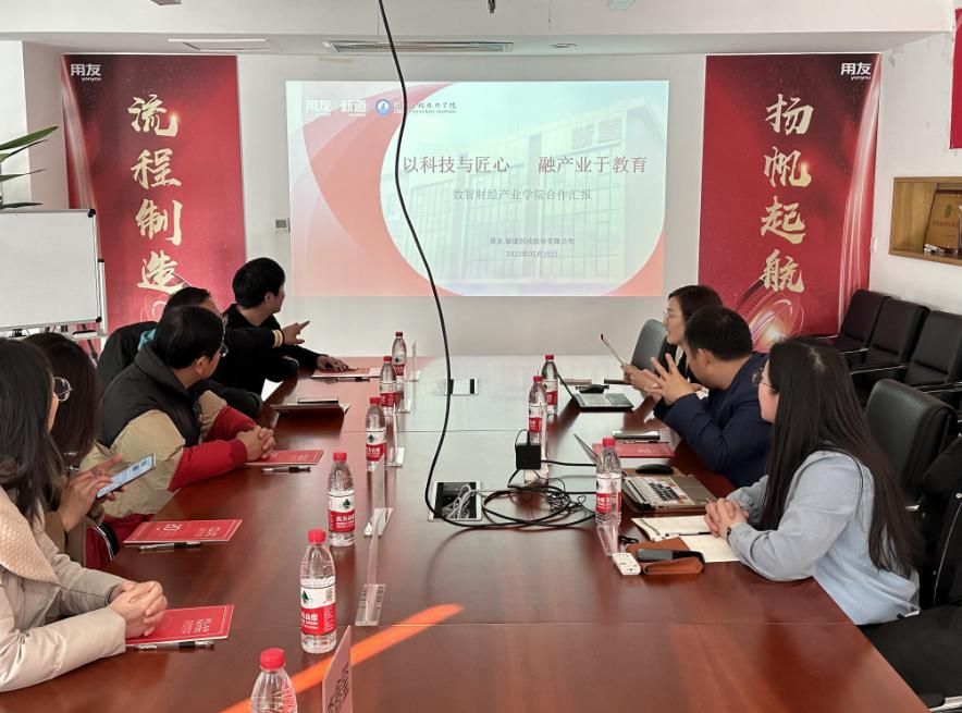 为进一步加强雷竞技RAYBET实习基地建设,推动产教融合发展,提高实习质量和应用型人才培养质量,2023年2月15日雷竞技RAYBETAPP特聘专家李望国、对外合作部部长王俊昆、教学科研部副部长白向伟、雷竞技RAYBET副经理姜玉婕、王昊以及教师代表,前往用友新道河北分公司进行走访交流。