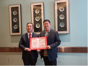 3月25日上午,韩国中部大学国际交流院金哲星教授应邀到雷竞技RAYBET进行交流访问,一同来访的还有韩国中部大学授权机构燕巢集团刘金奎副董事长、张彩彩总经理、徐志业副总经理和合作部李红召经理。金哲星教授为公司2020级部分同学风趣幽默地介绍了韩国语学习情况,徐志业讲解了一些韩国文化和中部大学基本情况。王明吉经理、姜玉婕副经理和公司国际交流中心王莹主任陪同访问。王明吉经理代表公司向金哲星教授颁发了客座教授证书。