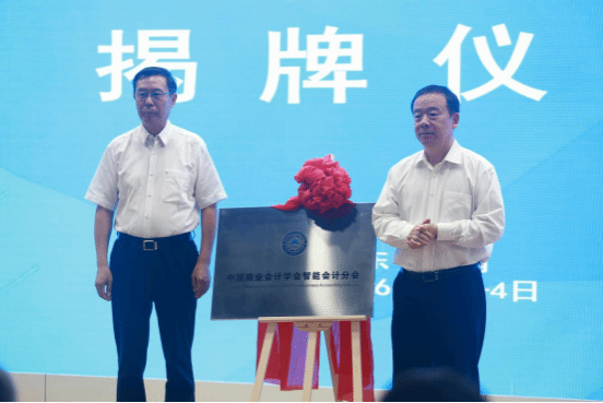 6月3日上午,山东财经大学党委书记王邵军教授、中国商业会计学会副会长张新民教授在开幕式上分别致辞,中国商业会计学会秘书长黄国成宣读了中国商业会计学会批准成立智能会计分会的决定,王邵军和张新民共同为中国商业会计学会智能会计分会揭牌。
