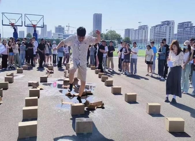 赛场上,老师和同学们奋力拼搏,相互配合。每一个比赛项目都充满了悬念与激情,让观众们欢呼不已。在“幸运盒子”比赛中,每个盒子里都有着未知的“惊喜”,在紧张刺激的氛围中,玩家们需要迅速做出决策,并付诸实践,每一次跳跃都充满了未知和挑战。在“同舟共济步”比赛中,大家齐声口号,或跑或跳,寻找最适合团队的方法默契配合,笑声与掌声不断。这些精彩瞬间,成为了赛场上一道亮丽的风景线。