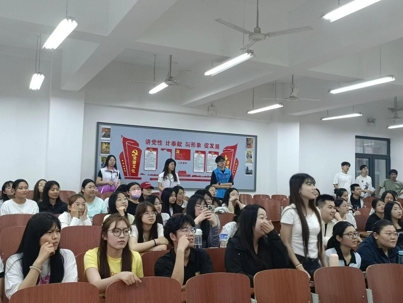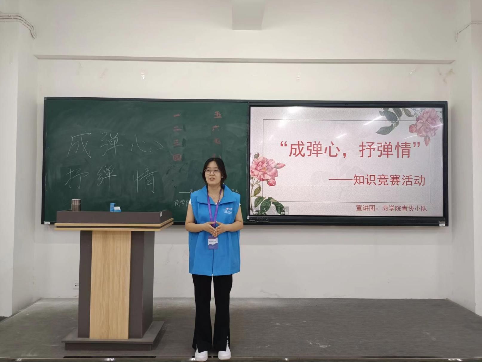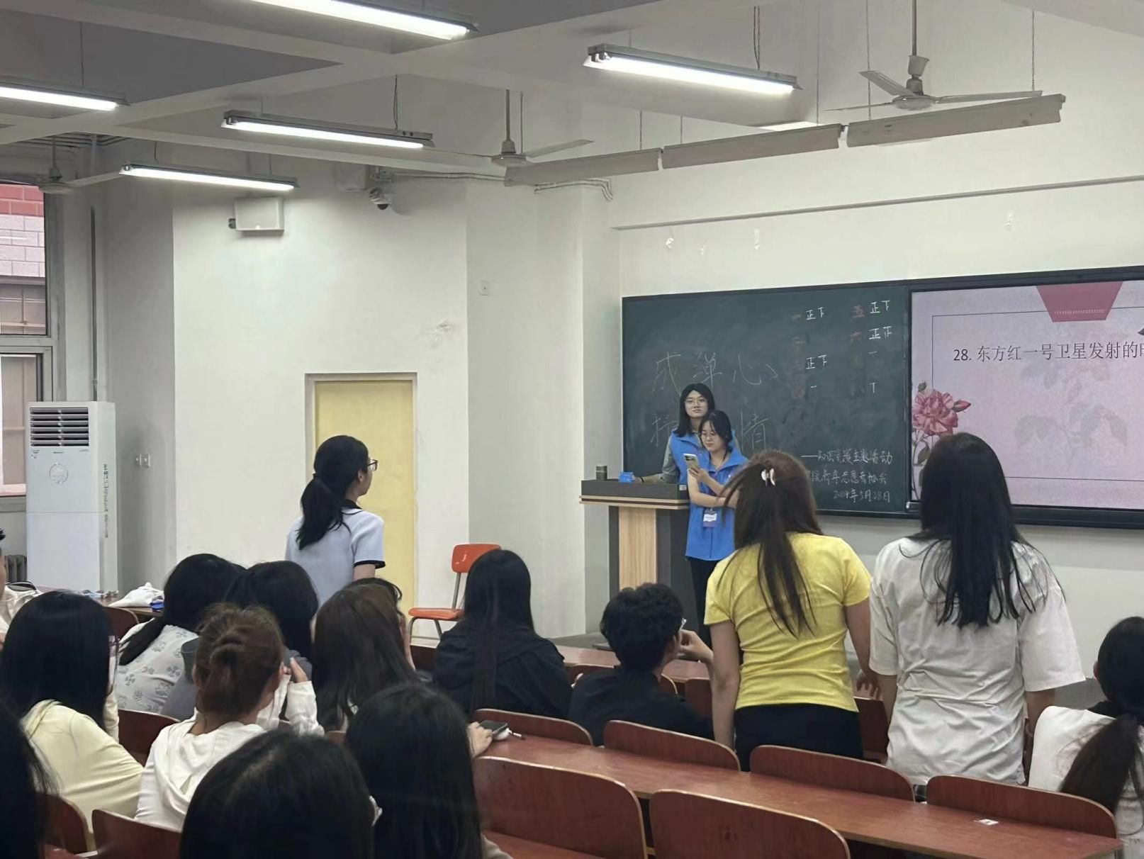 书本眷顾的是历史的记载与封存,而趣味问答的开展形式则是以另一种“活”的方式歌咏流传封存的历史,从不被文字拘泥,也不会遗忘历史。本次知识竞赛采取趣味问答形式,通过不可预知的滚动题目吊人心弦,智慧大屏上题目的随机滚动带来的是不一样的新奇体验。活动采取小组PK车轮战的比赛方式开展,通过各小组组员内部的分工协作以及集体作战考验的是小组之间的团结互助以及集体精神,最为深刻且有力地印证了两弹一星精神。整个活动进程中工作人员的计时、积分、主持各个环节的工作开展的如火如荼。知识竞赛的开展使得文字的叙述以一种全新且生动的形式对两弹一星精神进行阐释,书本封存记忆,也需要以另一种全新的方式使得两弹一星精神深耕每一为青年心中,根植浓厚情怀,秉承家国情怀。