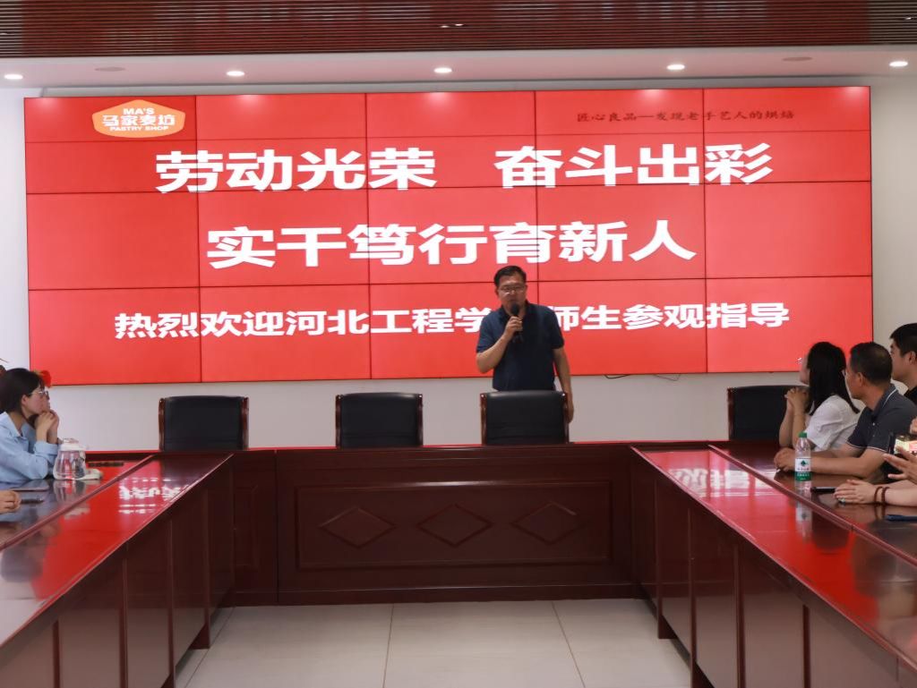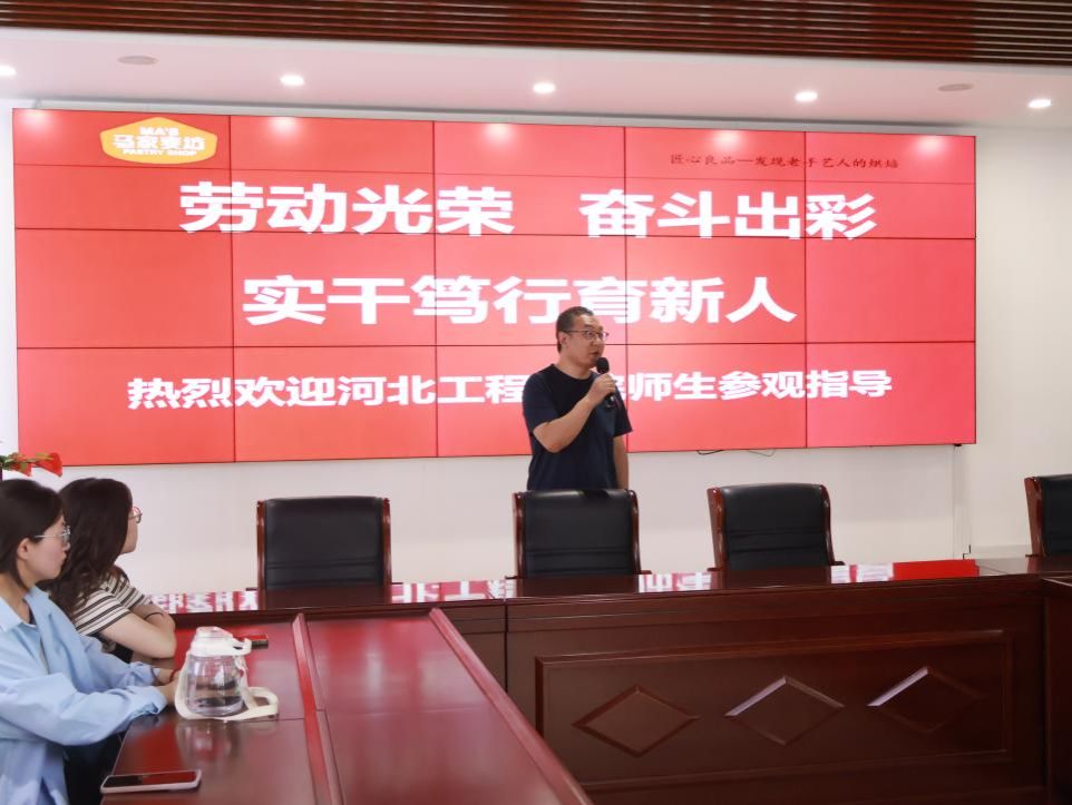 本次活动由陈赤华老师主持。陈老师向同学们介绍了活动举办的主题及目的,并带领同学们观看了马家麦坊食品有限公司的宣传介绍影片。马家麦坊行政总监乔志刚向同学们介绍了公司的发展史以及生产文化,强调了劳动的重要性和奋斗的意义。