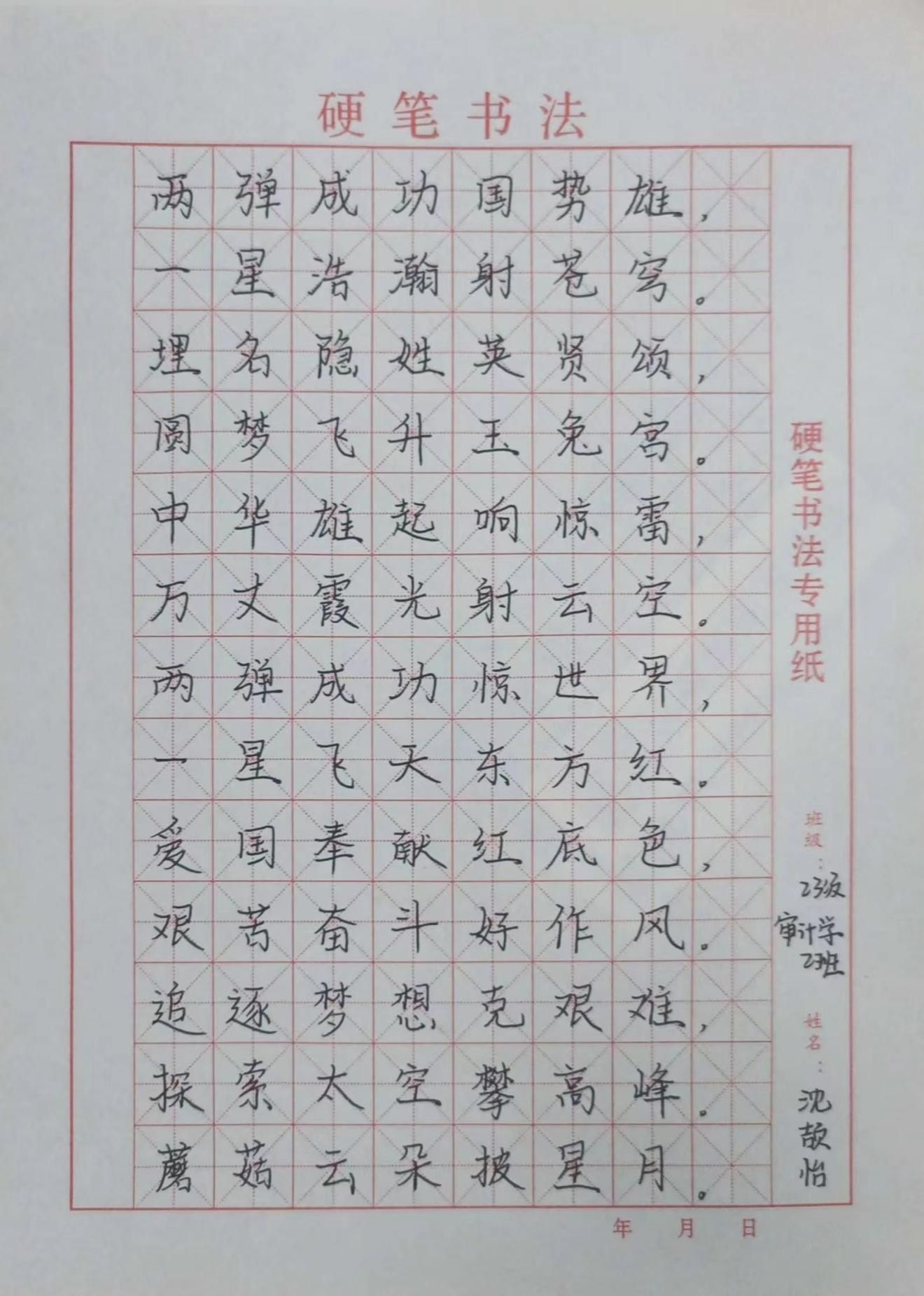 本次书法活动通过硬笔以及软笔书法作品的书写,参与人员的作品风格各异,有的苍劲有力,有的飘逸洒脱,字里行间都流淌着对两弹一星元勋们的崇敬和对国家强大的自豪。每一幅作品都是同学们用心打磨的成果,承载着他们对那段光辉历史的深刻感悟。工作人员以书法技巧、书法风格、作品的结构和布局等作为评判标准进行优秀作品筛选,并以电子留存的形式将同学们笔下展现的精神情怀永久传承下去。这次活动不仅为同学们提供了一个展示才华的平台,也让两弹情怀与大国重器的重要意义更加深入人心。