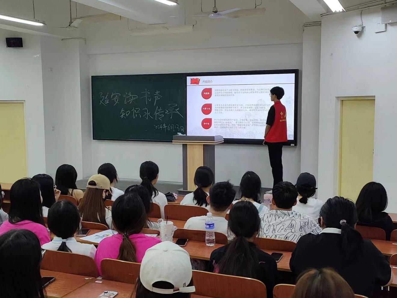进入6月,活动更加斑斓丰富。6月4日“延安精神永流传,知识普及共前行”知识普及活动为广大青年提供了深入了解延安精神的机会;6月7日“延安心语,传承情长”心得交流活动中,同学们积极分享学习心得,促进了延安精神的传承;6月11日“延风铸魂,光影传承”观影活动通过观看红色电影,让同学们深刻感受到革命先烈的英勇事迹;最后,6月13日“延安读书声,知识永传承”红色图书分享活动引导同学们从书籍中汲取延安精神的智慧。