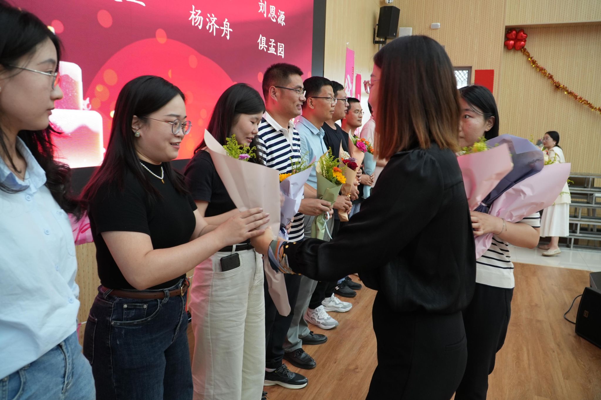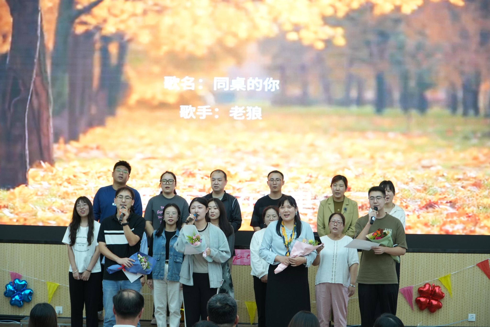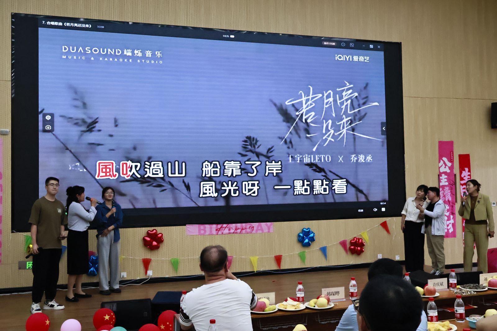 随后,寿星们有序分组登台,许庆斌主席、杨文飞经理、刘茜书记为他们一一送上精心准备的生日礼物和生日祝福。这份礼物不仅代表着对他们生日的祝福,更体现了公司对他们的关心、关怀和关爱。全体教职工则一起唱响生日快乐歌,共庆生辰,领导与寿星们合影留念。精彩的节目轮番上演。数智产业公司经理兼党总支书记杨文飞献上了开篇歌曲《为了谁》,歌声悠扬,赢得了阵阵掌声;雷竞技RAYBET表演的三句半则幽默风趣,逗得大家哈哈大笑。老师们都使出了自己的“杀手锏”,让活动多姿多彩。在表演过程中,还穿插了有趣的互动游戏,如“你划我猜”、“听歌识曲”等,寿星们和其他参与者积极参与,现场气氛热烈非凡。随着相机快门的轻响,合影定格了这一刻的美好。教师们的笑脸在镜头前绽放,如同秋日里最绚烂的花朵。