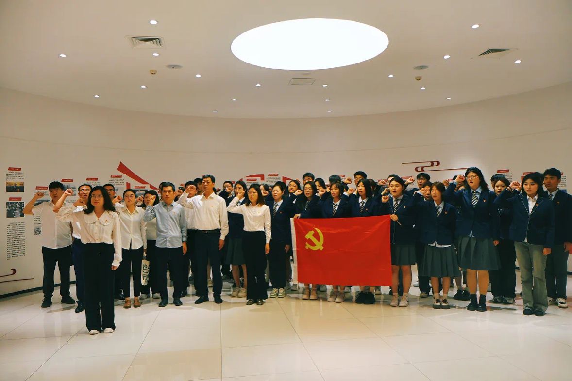 在中国梦主题展馆,党委组织部(统战部)副部长姜琪带领全体师生重温入党誓词并庄严宣誓,进一步坚定了师生不忘初心、牢记使命的信念。