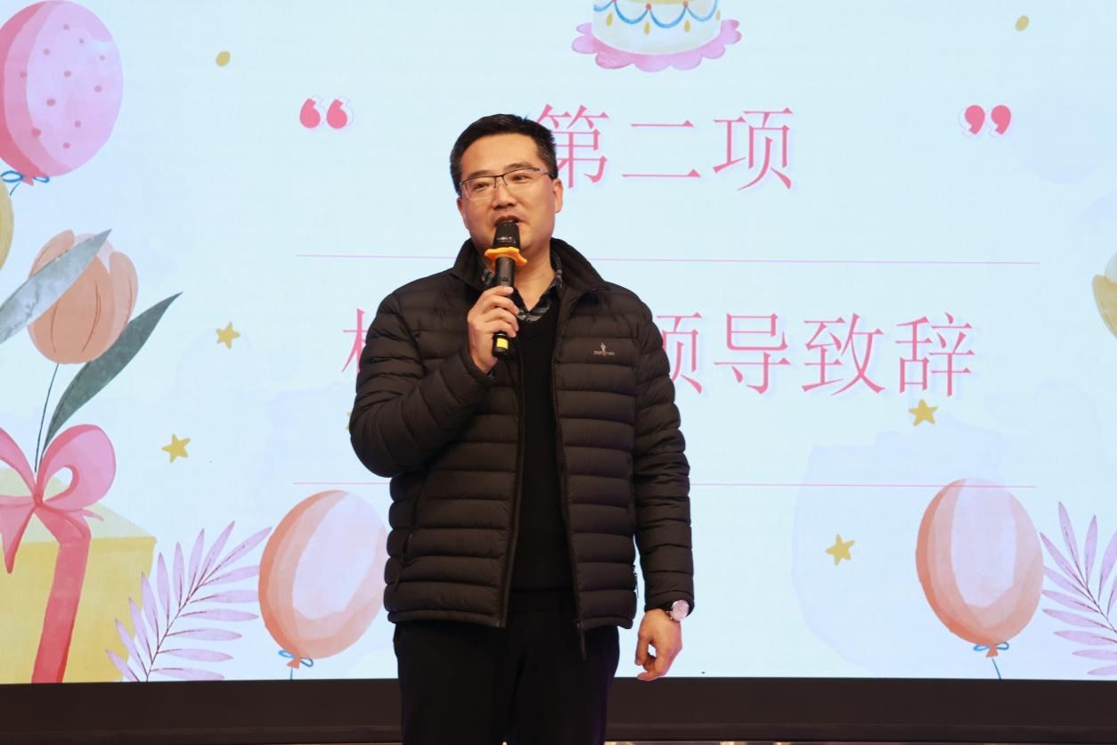 生日会伊始,刘茜经理介绍了出席此次生日会的各位领导和老师。随后,校工会主席许庆斌发表了热情洋溢的致辞。首先,许主席向寿星们表达了诚挚的生日祝福,对教职工们长期以来的辛勤付出表示衷心感谢;其次,许主席提到校工会将逐步完善教职工的各项福利,丰富教职工业余文化生活;最后,许主席向各位教职工献上诚挚的祝福。