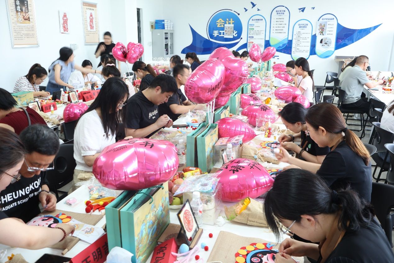 活动现场热闹、祥和,公司为老师们精心准备了鲜花、饮品、蛋糕以及来自张家口蔚县的非遗剪纸,通过非遗手工DIY京剧花旦挂画的制作,整个活动现场充满了艺术气息。本次活动不仅是一次手工制作的体验,更是一场教职工之间的交流盛会。在轻松愉快的氛围中,老师们不仅能够尽情享受手工制作的乐趣、分享彼此的创意和心得,更在交流中加深了友谊,感受到了公司大家庭的温暖与关怀。