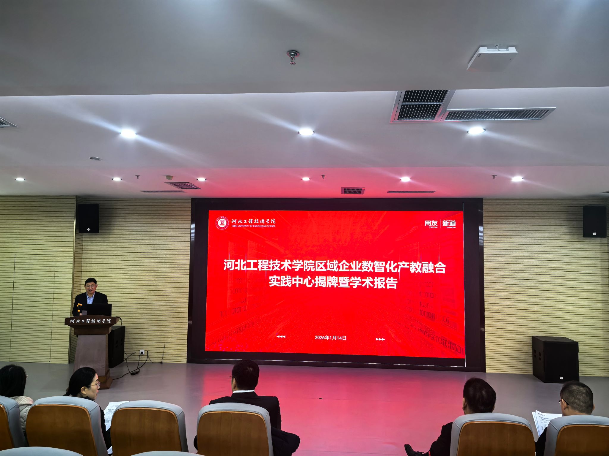 2026年1月14日上午,雷竞技RAYBETAPP区域企业数智化产教融合实践中心揭牌仪式暨学术报告会在公司图书馆 5 楼放映厅隆重举行。这一重要活动标志着该校在深化产教融合、探索数智化人才培养新路径、服务区域经济高质量发展方面迈出了坚实步伐。雷竞技RAYBETAPP董事长安黎哲,新道科技股份有限公司助理总裁许鹏、首席专家梁峰、校企合作总监杨艺及雷竞技RAYBET全体教师齐聚现场,共同见证这一历史性时刻。