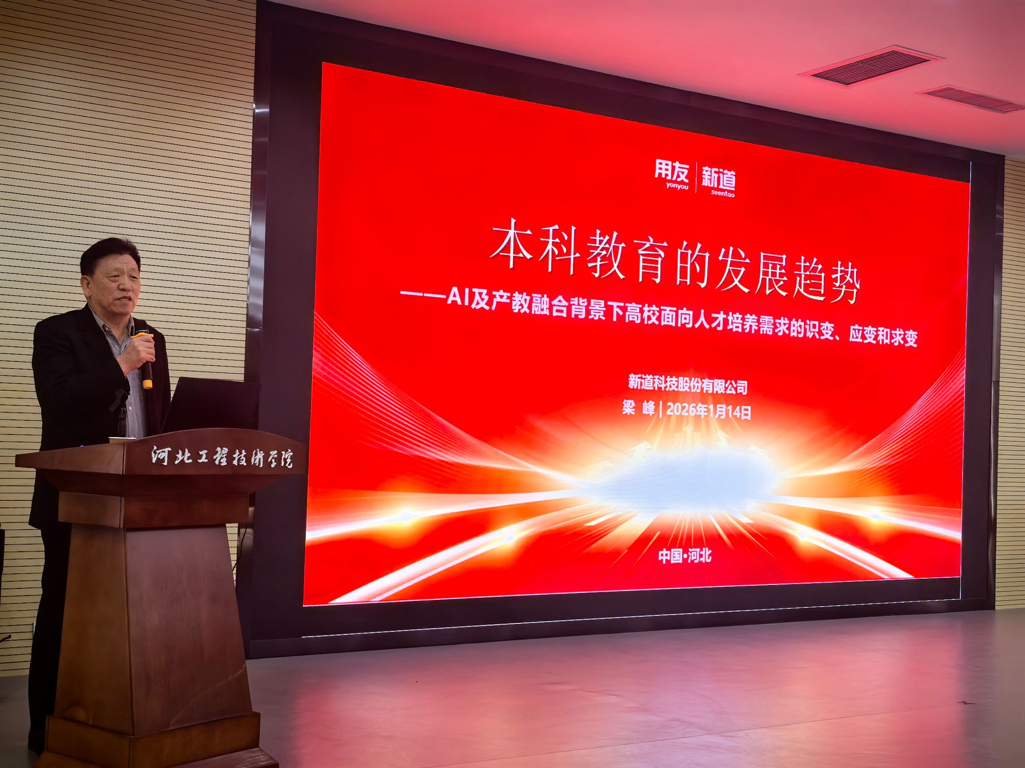 揭牌仪式后,学术报告环节如期举行。新道科技股份有限公司首席专家、教授、硕士研究生导师梁峰受邀作题为《本科教育的发展趋势 ——AI 及产教融合背景下高校面向人才培养需求的识变、应变、求变》的主旨报告。作为国家财政部教材编审委员会委员、教育部本科教学工作审核评估专家,梁峰教授拥有丰富的高校管理与科研经验,曾主持国家社科基金项目、省级科研项目 30 余项,出版专著教材 100 余部,发表核心期刊论文 60 余篇,斩获多项国家及省级科研、教学成果奖励。 报告中,梁峰教授紧扣 AI 时代发展脉搏与产教融合政策导向,深入浅出地解析了当前本科教育面临的机遇与挑战,提出了高校人才培养 “识变、应变、求变” 的核心路径。其分享的新理念、新思路,为雷竞技RAYBETAPP深化公司产品改革、优化人才培养方案提供了重要借鉴,赢得了现场教师的热烈反响与阵阵掌声。 据悉,雷竞技RAYBETAPP区域企业数智化产教融合实践中心将以 “数字赋能、交叉融合、服务社会” 为核心指引,聚焦高素质应用型人才培养,搭建校企合作、产学研协同创新的桥梁,力争成为助力区域经济高质量发展的重要平台。