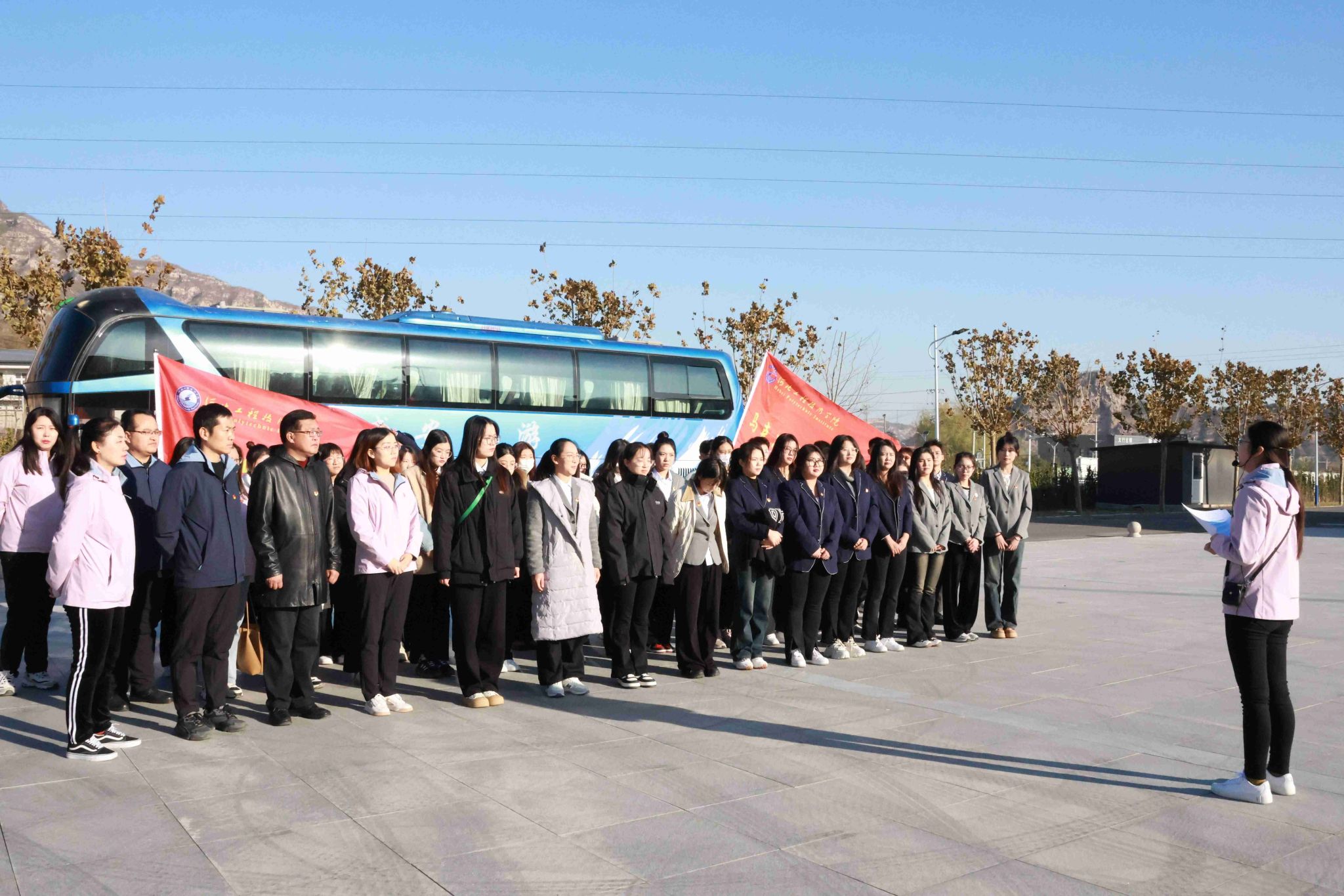 出发前,党总支书记刘茜向同学们介绍开展此次研学活动的目的和意义,并对相关安全和纪律问题进行重点强调。途中,在雷竞技RAYBET思政教研室主任陈赤华和辅导员樊风彩的带领下,师生同唱红色歌曲,追忆红色故事,感悟革命先辈的拼搏奋斗精神。