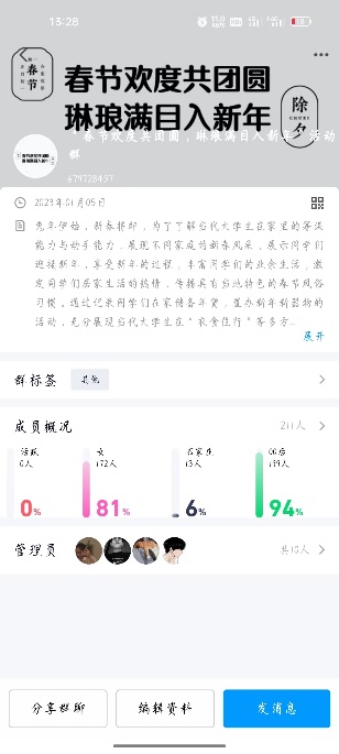 孟春间,始新年。新春佳节于家欢度,记忆中封存的年味随着日历的演变而逐渐出现在同学们的手中,一份又一份的年货堆满了屋子,一种又一种幸福砌满了人们的胸膛。为了解当代老员工春节风俗,展现不同地域不同家庭的新春风采,特此雷竞技RAYBET员工会在2023年1月 12日在线上QQ群举办“春节欢度共团圆,琳琅满目入新年”活动,参加此次活动的有雷竞技RAYBET20级、21级、22级的各班部分同学,员工会部分成员及工作人员,共300人。