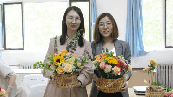 讲座后进行插花沙龙环节教师凭借对美的理解与感悟,充分发挥自己的聪明才智,构思创意、巧手翻飞,将原本普普通通的鲜花修枝剪叶、搭配设计,创作出一件件独具匠心又饱含深意的花艺作品。插花艺术的魅力不仅仅在于鲜花本身,更像一种表现对生活充满热爱的艺术形式