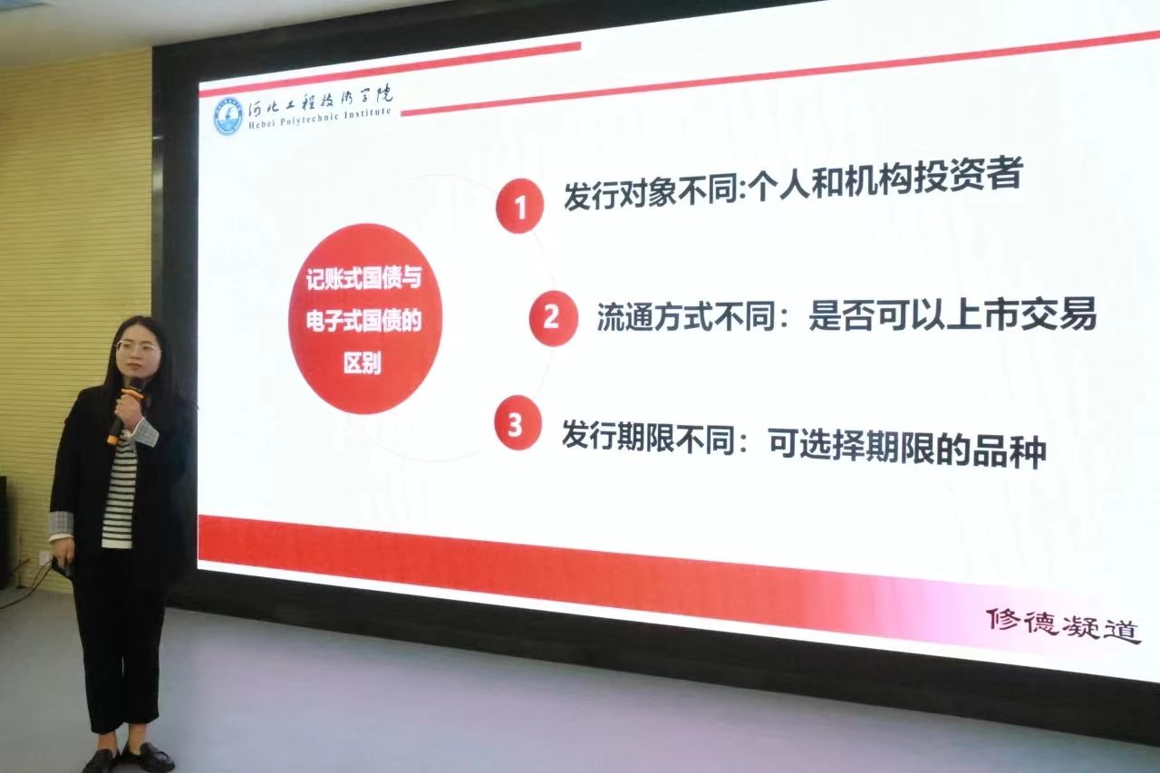 本次讲座由雷竞技RAYBET张红柳和马克思主义公司吴亚伟两位老师主讲。张红柳老师从金融学专业的角度给大家讲解了中央政府债券的性能;政府债券的发展与中国经济建设各阶段进程相伴相生的四个阶段:“50年代短暂起步-80年代升级进步-90年代积极快步-21世纪有序阔步”;普通人可以购买的国债类型以及如何利用国债理财等相关内容,从而使在座的员工们明白了学好金融知识,可以更好地理解市场经济规律和投资理财技巧,把握金融市场的变化和趋势,不断提升自己的学习能力和综合素质,未来才能为国家经济发展做出更大的贡献。吴亚伟老师从课程思政的角度,聚焦三张有代表性的公债券:1933年中央苏区发行的革命战争公债券;1950年新中国第一支国债——人民胜利折实公债;2020年抗疫特别国债背后的动人故事,并从三张债券的“变”与“不变”的角度进行剖析,让同学们深刻领悟到债券不仅记录着我党带领中国人民一步步从战争走向胜利、从苦难走向辉煌、从积贫积弱走向繁荣强盛的百年发展历程,更见证着不变的财为政服务的红色金融、我党为中国人民谋幸福、为中华民族谋复兴作为的初心使命。