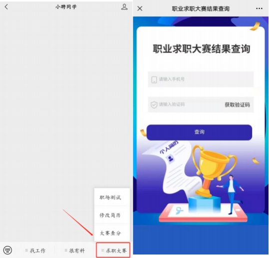 (一)初赛通过线上“智能平台”系统对选手提交的简历进行初步评分, 选手可通过“小聘同学”公众号右下角菜 单栏【求职大赛】选择【大赛查分】输入信息进行查询。