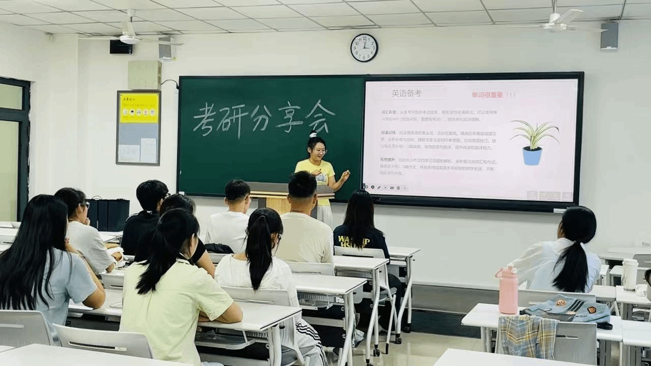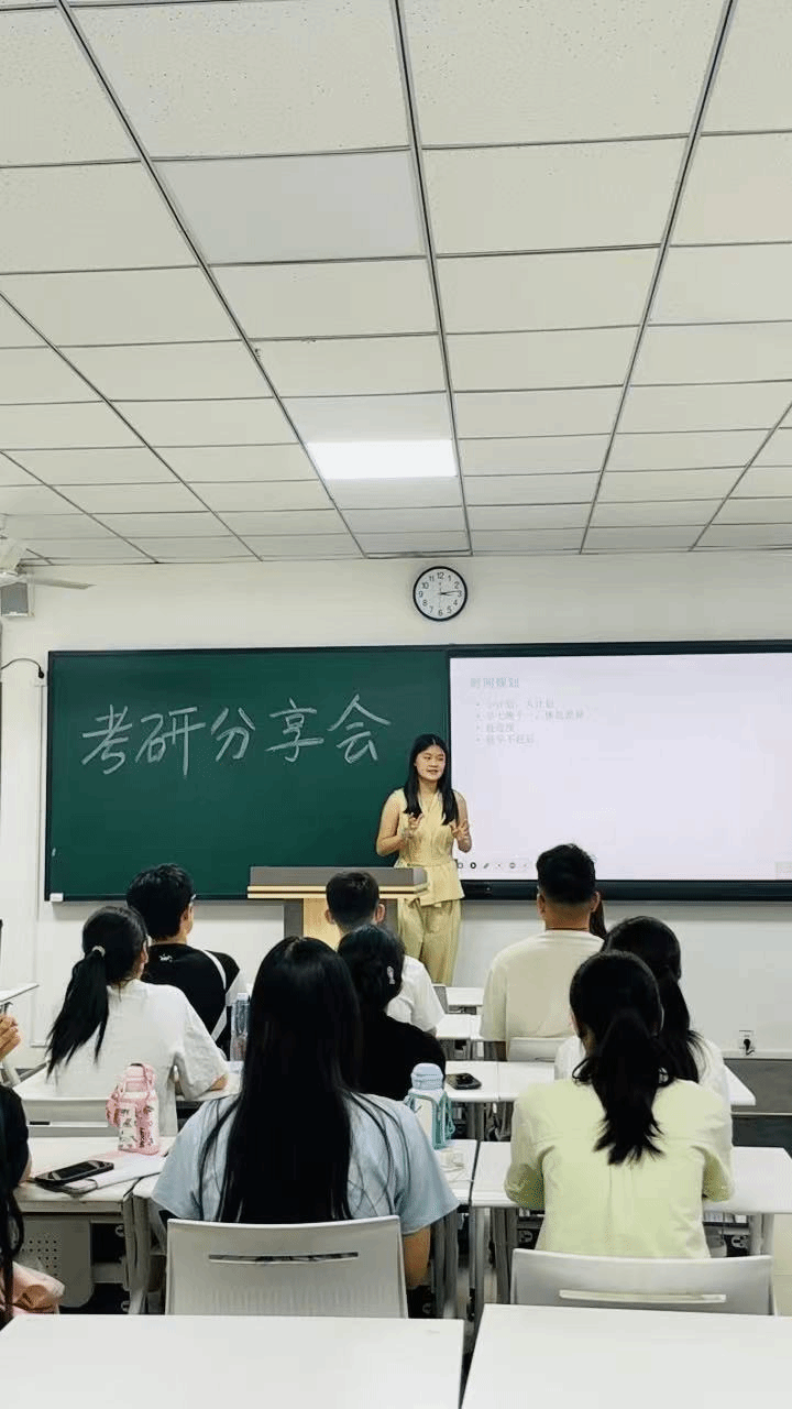 活动现场,学姐高琪被北京联合大学的职业技术教育录取,她率先结合自身备考经历,详细介绍了考研择校的方法,建议同学们综合考虑院校的专业排名、招生计划、历年分数线以及自身实力等因素。在备考规划方面,学姐郭慧荣将复习过程划分为基础、强化、冲刺三个阶段,并针对每个阶段给出了具体的学习建议,如基础阶段要扎实掌握知识点,强化阶段注重刷题与知识巩固,冲刺阶段进行全真模拟与查漏补缺。同时,还分享了英语、政治、专业课等各科目的复习资料和学习技巧,强调英语阅读和作文的重要性,建议同学们多做真题并总结答题规律;政治复习可紧跟主流辅导老师的节奏,合理利用刷题小程序提高学习效率;专业课要注重理解与背诵,搭建知识框架体系。