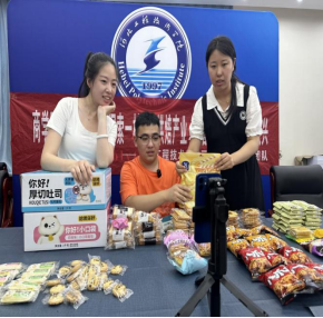 7月31日-8月2日“归乡画梦”团队成员进行直播带货的准备工作,团队成员分工明确,细心挑选出直播宣传的20多种产品,师生以积极热情的态度、轻松愉悦的氛围、风趣幽默的语言,从包装、大小、口感等方面,向直播间的粉丝宣传全国“一村一品”示范村-宁晋县马房村的乡村振兴烘焙产品。