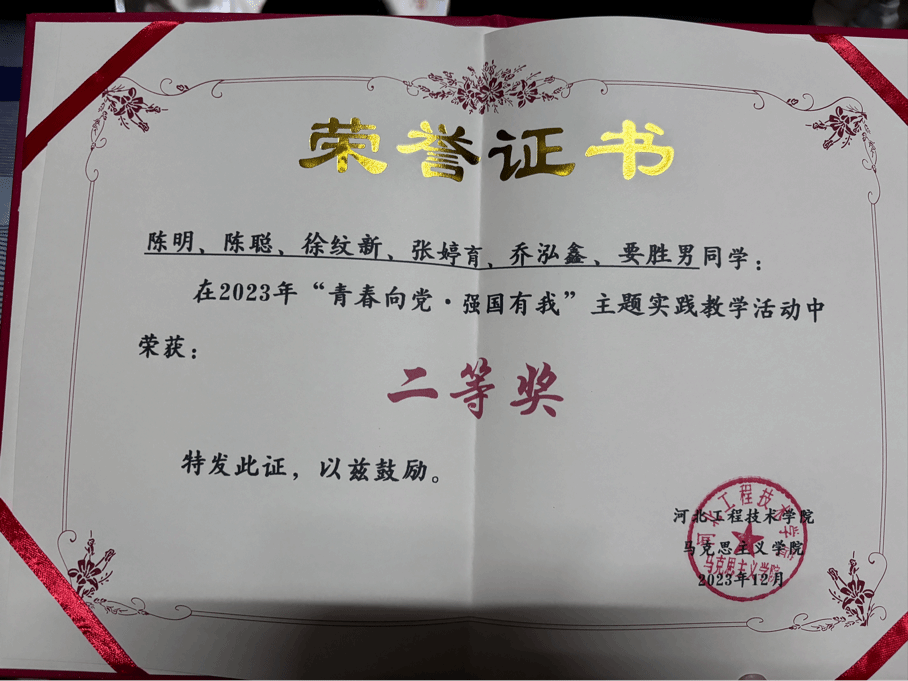 2023年12月在“青春向党.强国有我”主题实践教学活动中荣获“二等奖”