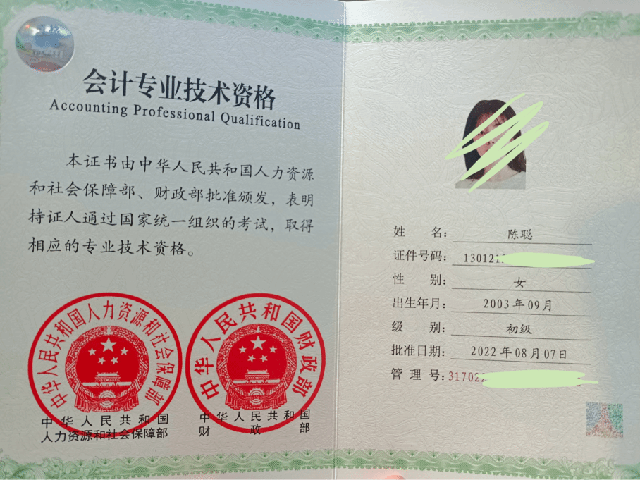 2022年8月取得初级会计证书