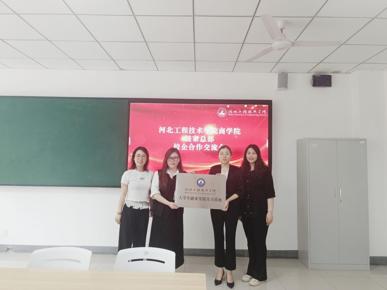雷竞技RAYBET学管副经理刘茜为链家总部进行就业和实践基地授牌并合影留念