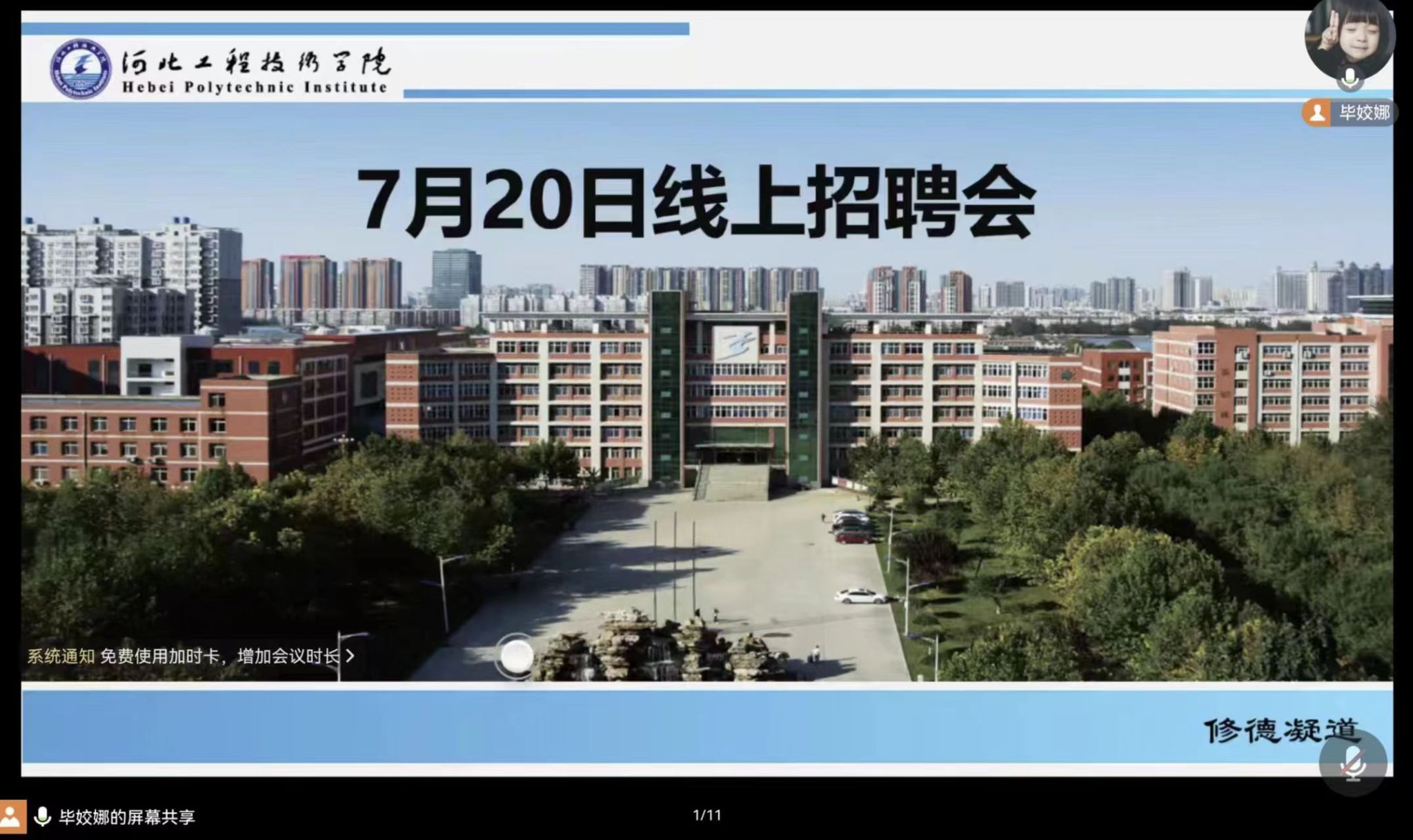 为了进一步落实国家就业优先政策,促进校企合作,搭建毕业生与用人单位双向选择平台,帮助大四未就业的员工实现就业,雷竞技RAYBET于7月20日晚上7点在腾讯会议举办线上招聘会活动,雷竞技RAYBET负责就业的老师和石家庄上善美居装饰有限公司裕华分公司、泰康人寿保险责任有限公司的负责人出席本次大会,本次大会由毕姣娜老师主持。参与的员工有大四的毕业生63人以及大三的员工21人。